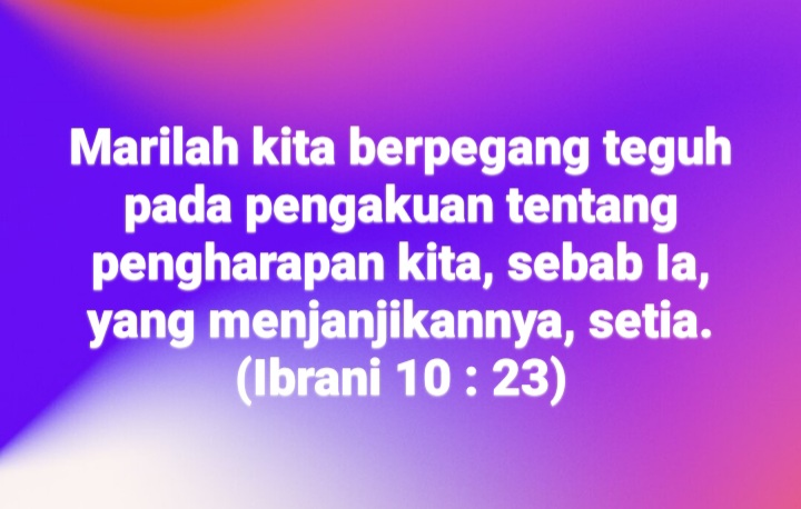 2. Marilah teguh berpegang pada pengakuan dan pengharapan kita karena Allah yang kita sembah adalah Allah yang setia. Janji yang kita ucapkan untuk melayani Tuhan, haruslah kita pegang teguh dan jangan pernah goyah oleh apapun. Setialah melayani Tuhan maka Tuhan pun akan setia melayani kita.