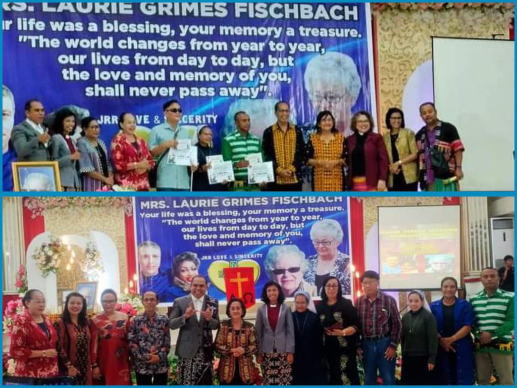 Untuk mengenang 40 hari kematian Mrs. Laurie Grimess Fishbach, pasangan suami istri ini membagi rezeki kepada panti Asuhan khusus anak-anak cacat/disabilitas susteran Alma Baumata, Panti Asuhan Generasi Pengubah Sikumana, Komunitas Tunanetra Tofa. Juga diakonia bagi 5 keluarga/janda miskin yg terpilih dari berbagai tempat di kota Kupang dan sekitarnya, juga kepada 4 orang sahabat Ny. Rowiy Fischbach .